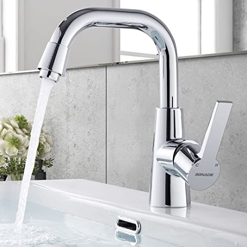 Rubinetto bagno BONADE Miscelatore lavabo girevole 360°, miscelatore monocomando per bagno e cucina, acqua calda e fredda disponibile, ottone cromato