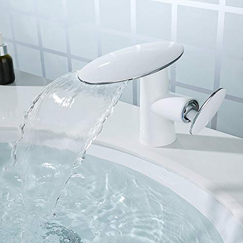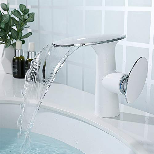 Rubinetto Bagno Cascata, Moderno Bianca Monocomando Ottone Rubinetto Bagno Lavabo, Regolazione A Caldo E Freddo, Per Miscelatore Lavabo E Rubinetti Per Bidet, Valvola In Ceramica
