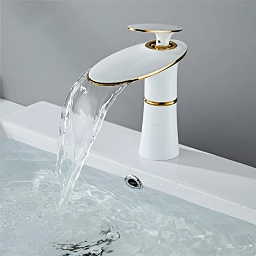 Rubinetto Bagno Cascata Monocomando Miscelatore Lavabo Bagno Stile Moderno Ottone Rubinetto Bagno Lavabo, Acqua Calda E Fredda Disponibile, Valvola In Ceramica, Bianco