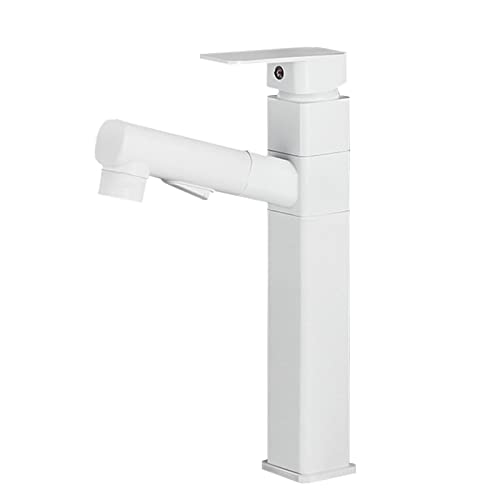 Rubinetto Bagno con Doccetta Estraibile Miscelatore Monocomando Lavabo in Ottone Rubinetti per Lavandini Bagno a 2 Modalità Rubinetto Lavabo Miscelatore Bianco-Quadrato,Alto