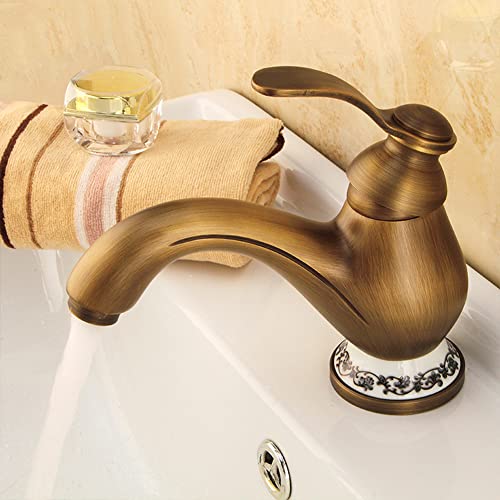 FW Rubinetto Bagno Elegant Miscelatore Monocomando Lavabo Bagno Antico Ottone Rubinetto Bagno Lavabo, Regolazione A Caldo E Freddo Rubinetto Bidet, Valvola in Ceramica, Bronzo