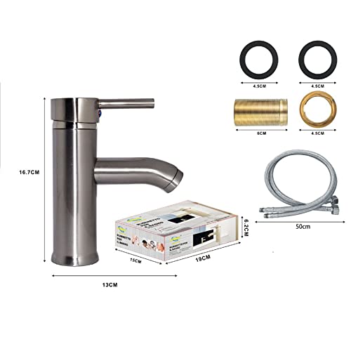 Rubinetto da bagno lavabo in Acciaio Inox acqua fredda e calda ANMECS Miscelatore Monocomando per Bagno (ANC-9122)