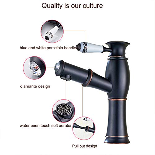 Rubinetto Bagno Lavabo, Rubinetto Bagno Con Doccetta Estraibile, Stile Antico Ottone Rubinetto Lavabo, Rubinetto Bidet Per Acqua Calda E Fredda Disponibile, Elegant Miscelatore Monocomando, Nero