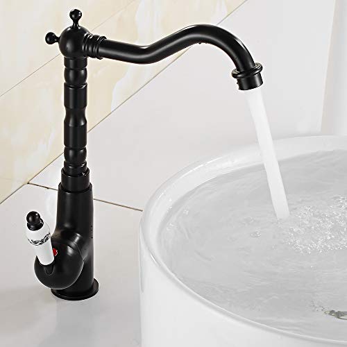 Rubinetto Bagno Lavabo Alto Nero Girevole 360° Miscelatore Rubinetto Monocomando Antico per Bagno e Cucina