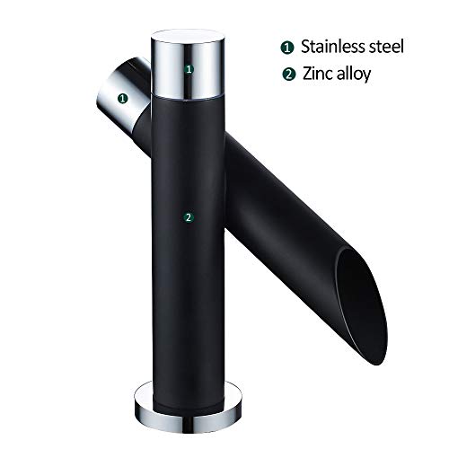 Rubinetto Bagno Lavabo Nero Opaco per Lavandino a Cascata Miscelatore Monocomando Rubinetto Design Moderno in Ottone (Corto)