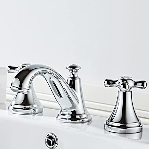 Rubinetto Bagno Tre Fori, Miscelatore Lavabo Bagno 3 Fori Ottone Freddo e Caldo Rubinetto Del Bagno Doppia Maniglia Diviso Rubinetto Del Lavabo-Cromo