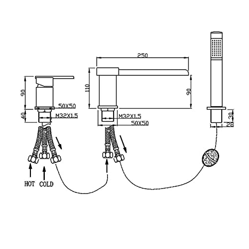 Rubinetto per Bordo Vasca 3 Fori Cromo Miscelatore Bordo Vasca da Bagno Caldo e Freddo Multifunzione Rubinetto per Vasca con Doccetta,A