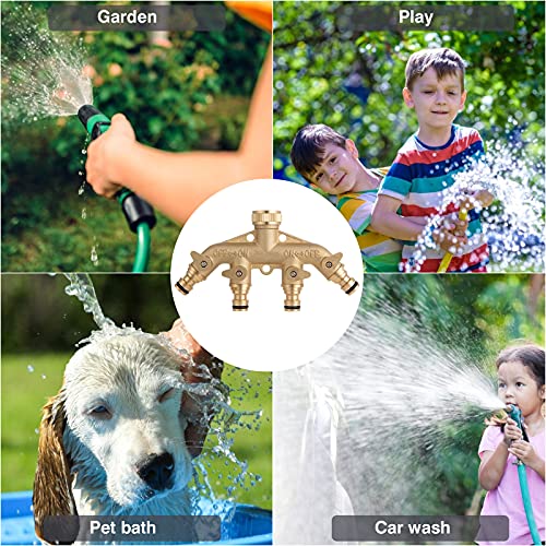 Rubinetto collettore Idraulico a 4 Vie, Corpo in Ottone, Chiavi di Chiusura in Ottone, connettore per Tubo da Giardino con valvole Chiusura Rubinetto individuali, rubinetti e uscite da 3/4"