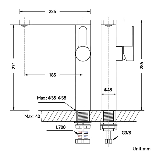 FACILE INSTALLAZIONE: Diametro del foro di installazione: 35-38 mm;