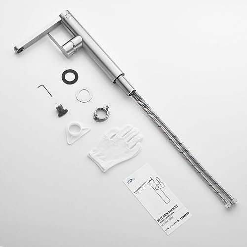 DESIGN ELEGANTE: Il rubinetto cucina ha un look semplice ma elegante che si integra perfettamente nella cucina moderna. il design a L e la portata girevole a 360° rendono il rubinetto da cucina perfetto per lavelli singoli o doppi.