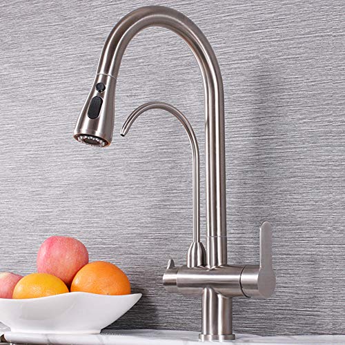 Rubinetto Cucina 3 Vie Acciaio Inossidabile Spazzolato Acqua Calda e Fredda Rubinetto da Cucina Girevole a 360 ° Miscelatore Cucina