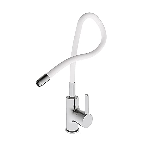 Rubinetto Da Cucina In Acciaio Inox Spazzolato SS304 E Silicone Miscelatore Alto Monocomando Per Lavello Lavandino Lavabo Con Beccuccio Girevole a 360° Design Moderno Winnipeg (Bianco)