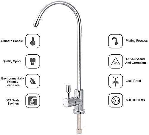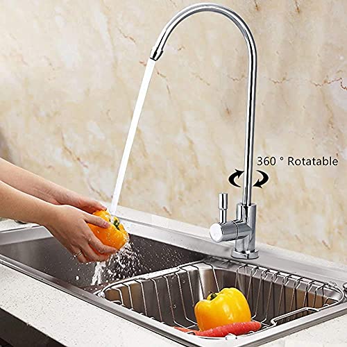 1/4 '' Rubinetto da cucina a collo di cigno rubinetto di zinco a maniglia singola rubinetto girevole a 360 ° cromato con filtro acqua potabile a Osmos inversa per cucina