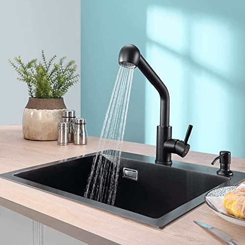 Rubinetto Cucina con Doccetta Estraibile Nero, CECIPA Miscelatore da Cucina Girevole 360°, Rubinetti Cucina per Lavelli a 2 Modalità Jet, Acciaio Inossidabile, Acqua Fredda e Calda