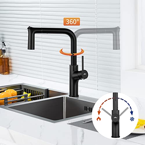 【RUBINETTO DA CUCINA ESTENSIBILE 】 Il rubinetto da cucina nero ha un tubo doccia estensibile e la lunghezza può essere fino a 40cm. Una sfera di gravità è usata per riportare il tubo estensibile nella sua posizione normale.