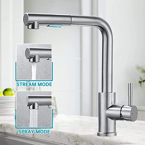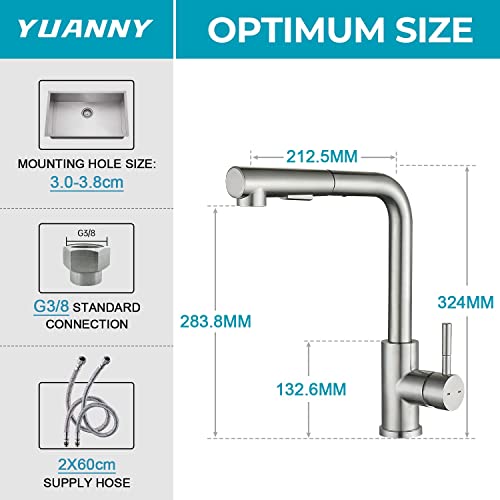 Rubinetto da Cucina Doccetta Estraibile, YUANNY Miscelatore Monocomando Cucina con Bocca Alta, Girevole 360° Rubinetto Cucina per Acqua Fredda e Calda, Miscelatore Lavello Cucina Acciaio Inossidabile