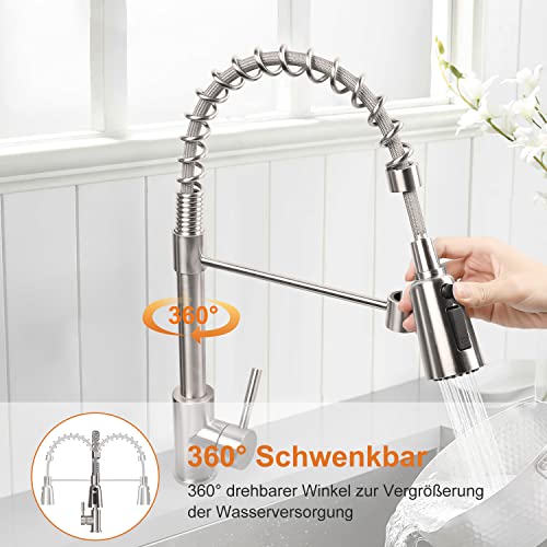 Materiale durevole di alta qualità: rubinetto da cucina con struttura in ottone incorporata, resistente alla ruggine e alla corrosione, 100% senza piombo, antibatterico, mantiene l'acqua pulita. L'acciaio inossidabile è bello e risolve il problema della ruggine e della perdita di colore;