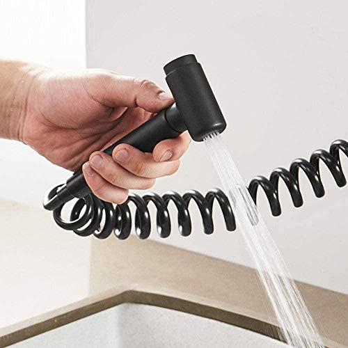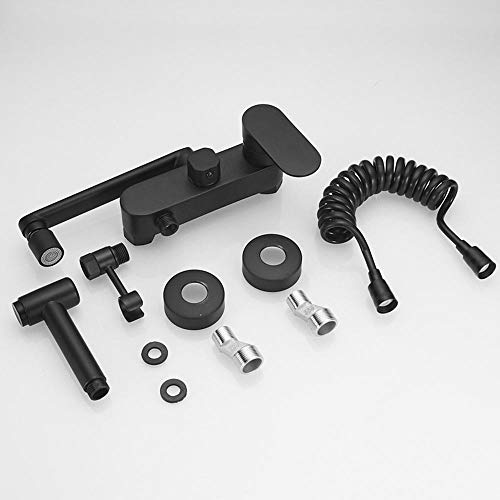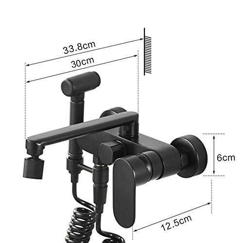 Rubinetto da Cucina a Muro Nero con Doccia Girevole,Miscelatore a Parete Ottone Caldo e Freddo, Rubinetto per Lavabo a Parete-Nero_30 Centimetri
