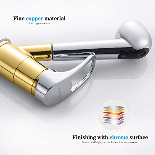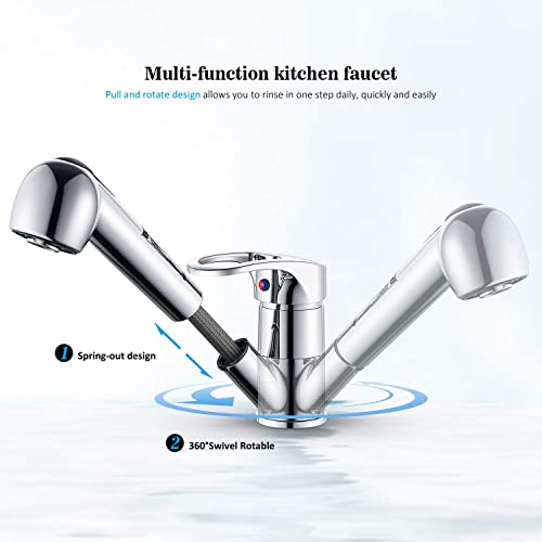 Rubinetto Cucina Estraibile, BONADE Miscelatore Monocomando Rubinetto per Cucina con Doccetta Estraibile, Girevole 360° Rubinetto per Lavandino da Cucina, Ottone, Cromato