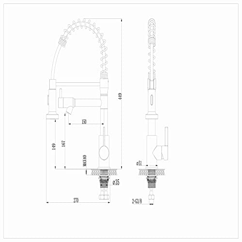 Uso flessibile: il nostro rubinetto per lavello da cucina in acciaio inossidabile può essere ruotato di 360 ° e l'ugello può essere tirato liberamente, il che è pratico per pulire ogni angolo e mantenere pulito il lavello. La molla in acciaio inossidabile SUS 304 ha un'elevata resistenza e non è facile da rompere o deformare.