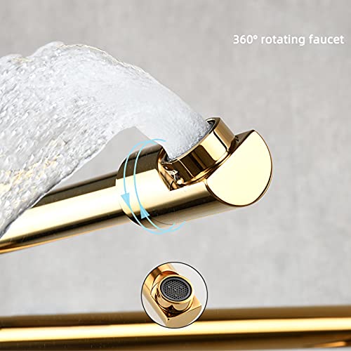 Rubinetto Rubinetto Cucina Rubinetto Cucina Freddo Singolo In Rame, Rubinetto Lavello Da Cucina Tratto Girevole Pieghevole, Rubinetto Di Riempimento Pentola Monocomando, 1 Foro Montato,Oro (Color: