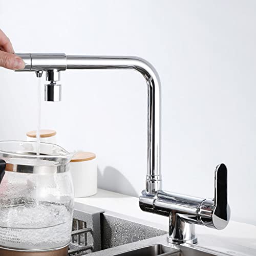 Rubinetto Cucina a Tre Vie Rubinetto Lavello Pieghevole Ottone Multifunzione Girevole Rubinetto per Osmosi a Tre Vie-Cromo