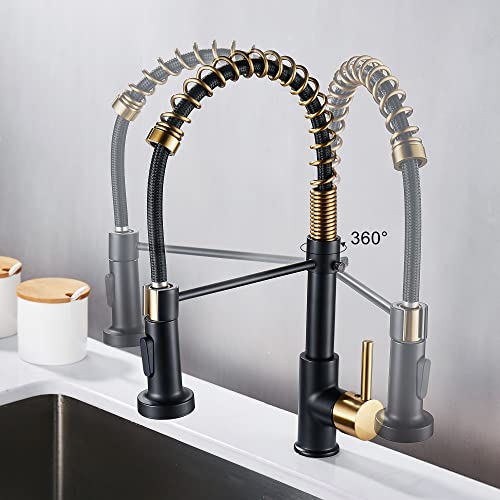 Rubinetto da cucina, con molla, allungabile, singola maniglia, in ottone, installazione sul piano, per lavello da cucina (oro nero B)