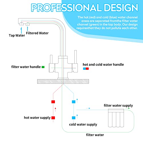 RUBINETTO CUCINA 3 VIE: Combina il rubinetto cucina e il rubinetto dell'acqua potabile in uno solo, includendo acqua calda, acqua fredda e acqua potabile. Risparmia denaro e spazio e facilita l'uso quotidiano.