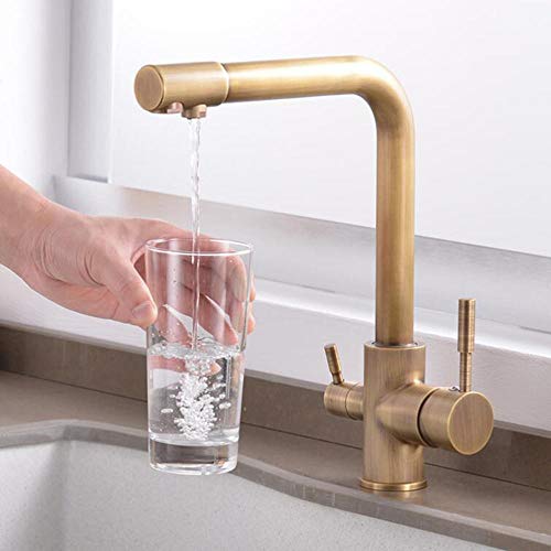 Rubinetto 3 Vie Cucina Ottone Antico Depuratore D'Acqua Bevanda Calda e Fredda Dritta 3 In 1 Miscelatore Cucina