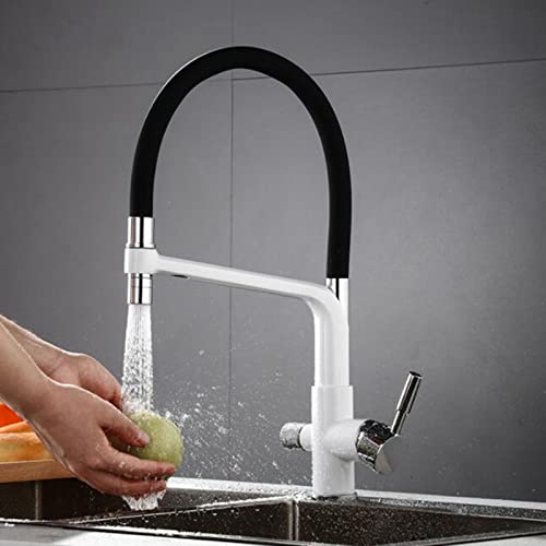 Rubinetto 3 Vie Cucina Ottone Rubinetto 3 In 1 Girevole Multifunzione Rubinetto per Osmosi A Tre Vie Cucina-Bianco