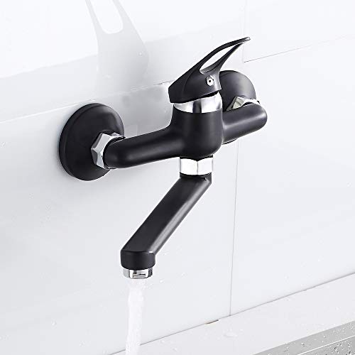 Rubinetto da cucina a parete con beccuccio lungo, miscelatore monocomando, girevole a 360°, in acciaio inox e ottone (nero)