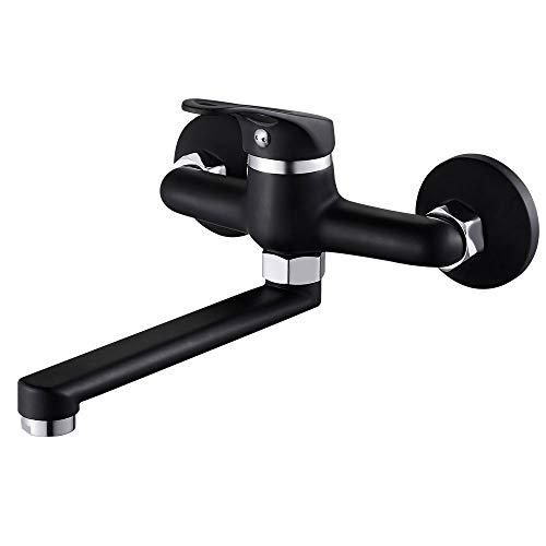 Rubinetto cucina parete monocomando lavello a parete con beccuccio lungo basso miscelatore acqua fredda e calda nero lucido per cucina bagno e lavanderia (18 cm)