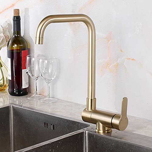 Rubinetto da Cucina Pieghevole Miscelatore Cucina Sottofinestra Oro Spazzolato Acciaio Inossidabile Può Essere Piatto Acqua Calda e Fredda Girevole a 360° Foro Singolo Rubinetto Cucina-A