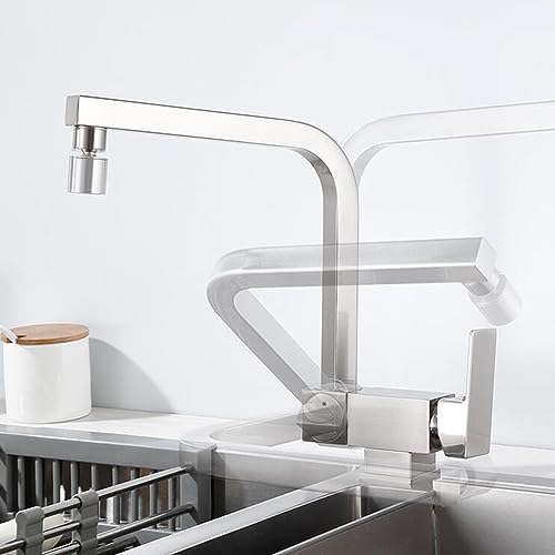 Rubinetto Cucina Pieghevole Sottofinestra, Miscelatore Cucina Abbattibile Girevole Ottone Acqua Fredda e Calda Foro Singolo Rubinetto da Cucina Sottofinestra-Disegno