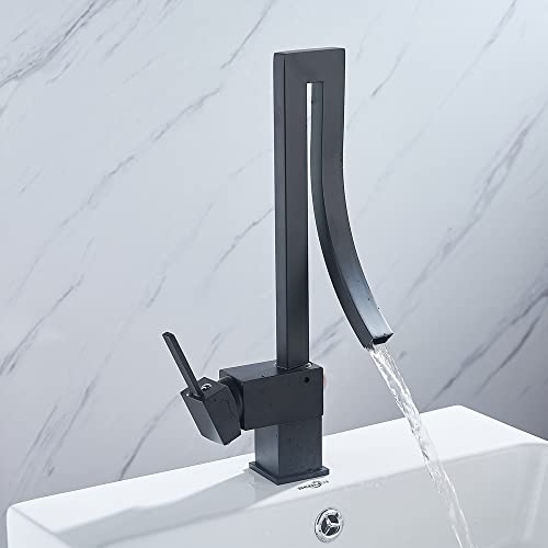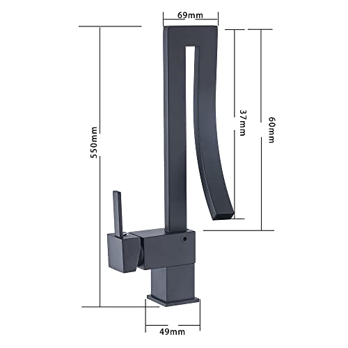 Rubinetto da cucina quadrato con erogatore alto, miscelatore per lavabo, colore nero