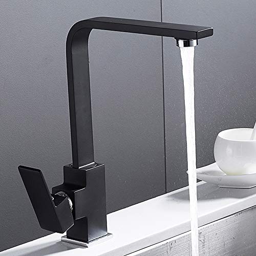 Rubinetto Cucina nero Quadrato Girevole a 360° Miscelatore Monocomando lavello in ottone