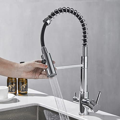 Rubinetto 3 Vie Cucina Rubinetti Cucina Doccetta Estraibile Espring Miscelatore 3 Vie Rubinetti Cucina Doccetta Estraibile Girevole a 360° con Filtro Dell'Acqua Doccetta Estraibile Cromo
