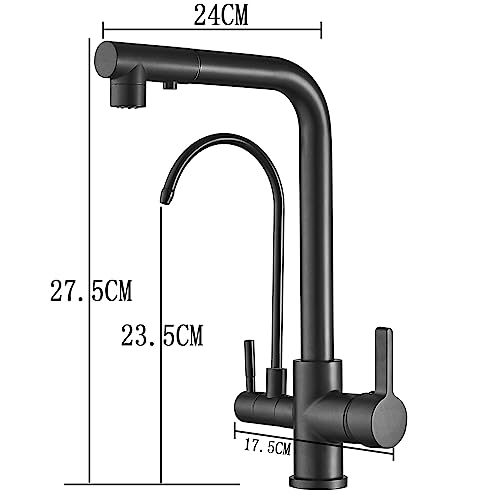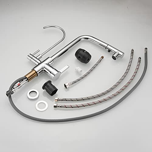 Rubinetto 3 Vie Cucina Rubinetti Cucina Doccetta Estraibile Miscelatore 3 Vie per Utilizzo con Filtro Depuratore Rubinetto Cucina 3 Vie per Sistemi Osmosi,Cromo
