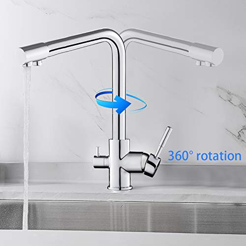 Rubinetto Cucina per Sistemi Osmosi, BONADE Miscelatore Cucina 3 Vie Rubinetto Cucina Girevole a 360° in Ottone, Cromato Rubinetto per Depuratore