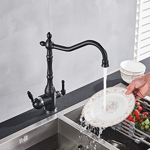Rubinetto Per Cucina 3 Vie Per Sistemi Osmosi Doppia Leva Girevole A 360° Ottone Miscelatore Cucina Tre Vie Bocca Alta, Acqua Fredda E Calda Rubinetto Lavello Cucina, Vintage Anticato, Nero