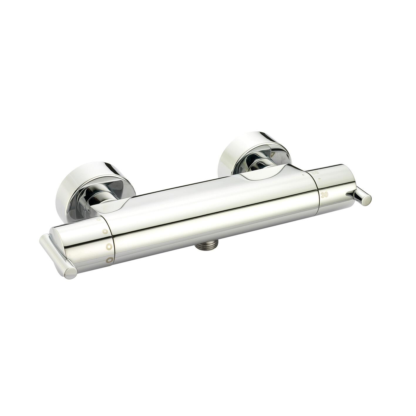 In ottone cromato lucido, dotato di adattatori per attacco a muro. Ideale per doccia montaggio esterno. La cartuccia termostatica permette di impostare e mantenere la temperatura ideale garantendo stabilità di flusso e risparmio energetico