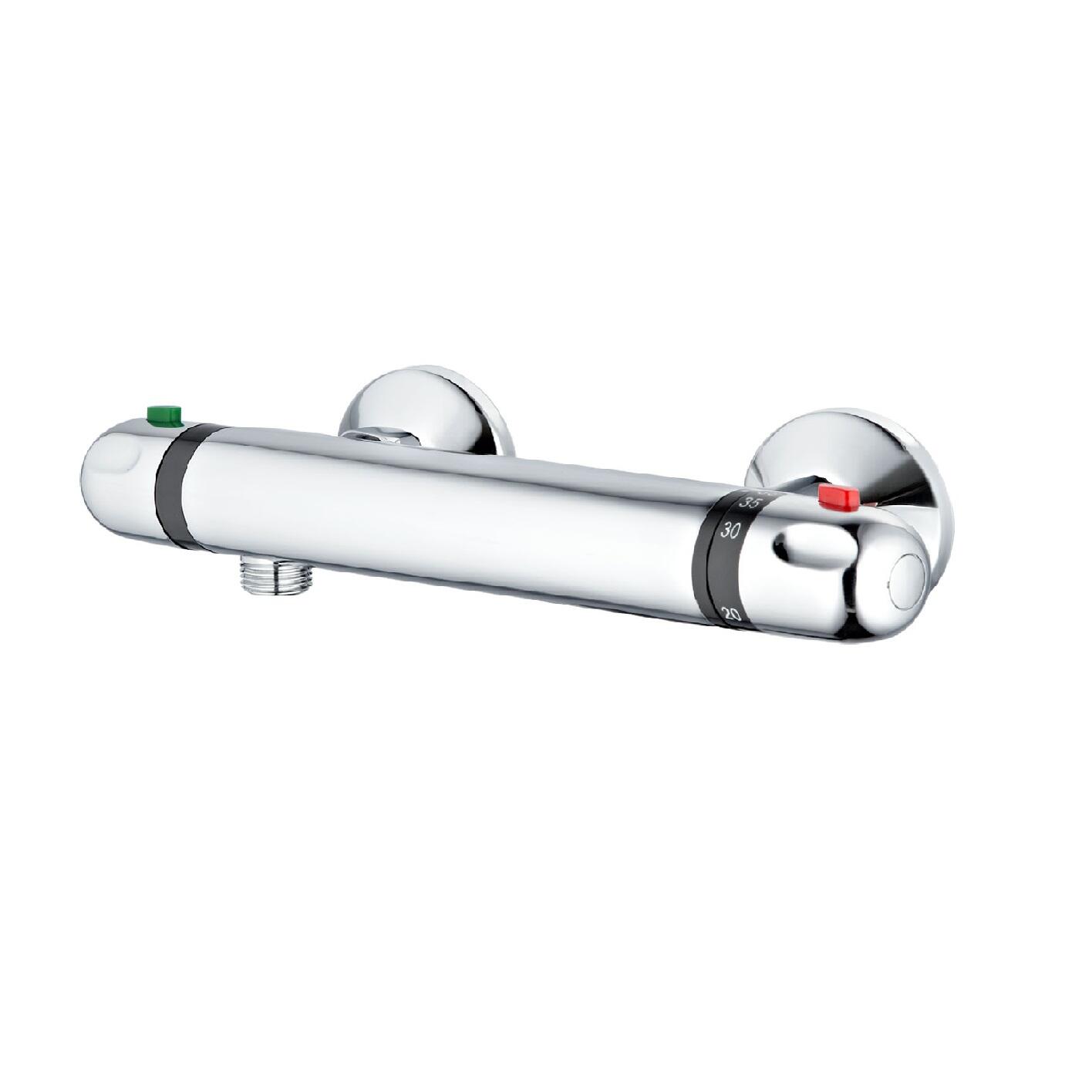 In ottone cromato lucido, dotato di adattatori per attacco a muro. Ideale per doccia montaggio incasso muro. La cartuccia termostatica permette di impostare e mantenere la temperatura ideale garantendo stabilità di flusso e risparmio energetico