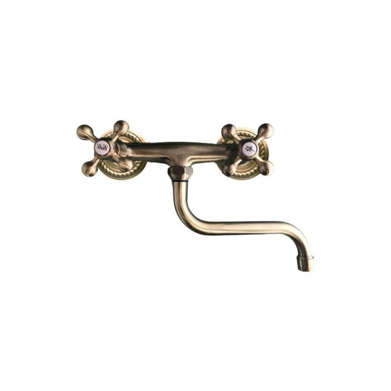 Gruppo lavello parete bronzato Rubinetto a perete con maniglie a stella e canna girevole, con una bellissima finitura bronzata, vecchio ottone Lunghezza canna: 18 cm Interasse standard: 15 cm