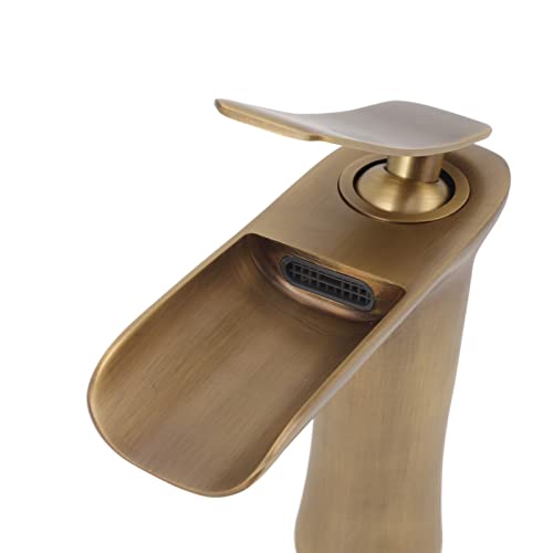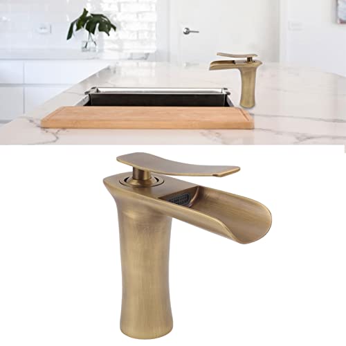 Rubinetto per Lavabo, Rubinetto per Lavabo da Bagno Rubinetto per Lavabo da Appoggio a Cascata in Ottone Antico a Campata Singola per Acqua Calda e Fredda