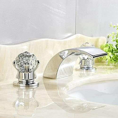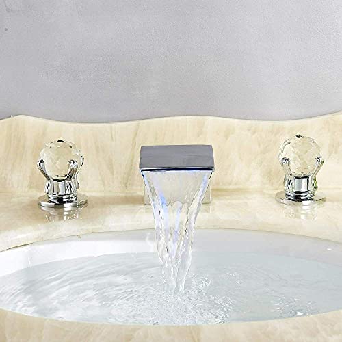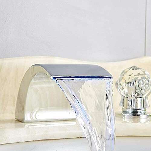 Rubinetto per lavabo da bagno a LED diffuso con 2 maniglie in cristallo cromato