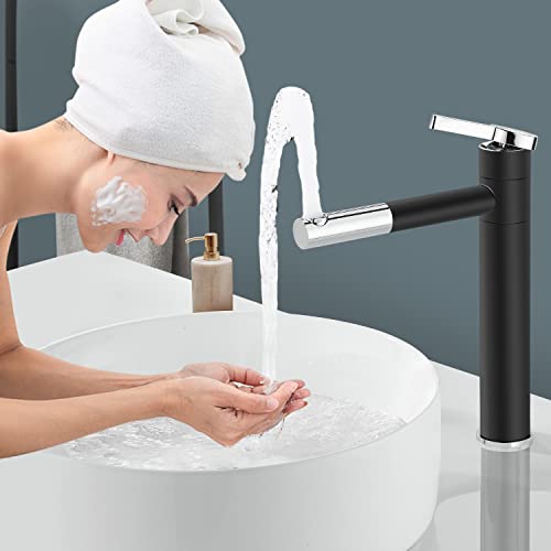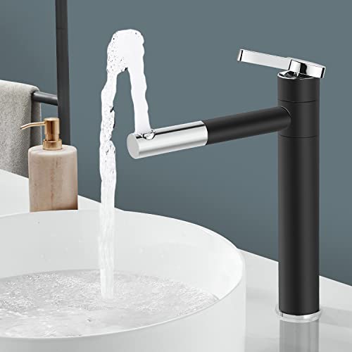 Rubinetto Lavabo Alto, Rubinetto Bagno Lavabo Elegante Miscelatore Lavabo Girevole a 360, Rubinetto Monocomando per Bagno,Può Regolazione a Caldo e Freddo(Nero)