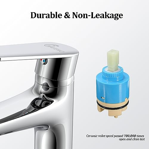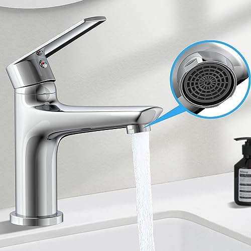 Rubinetto Lavabo per Bagno in Ottone Cromato, WAVEWO Miscelatore Monocomando per Lavandino Regolabile per Acqua Calda e Fredda, Rubinetteria Lavabo a Risparmio Idrico per Bagno, RV