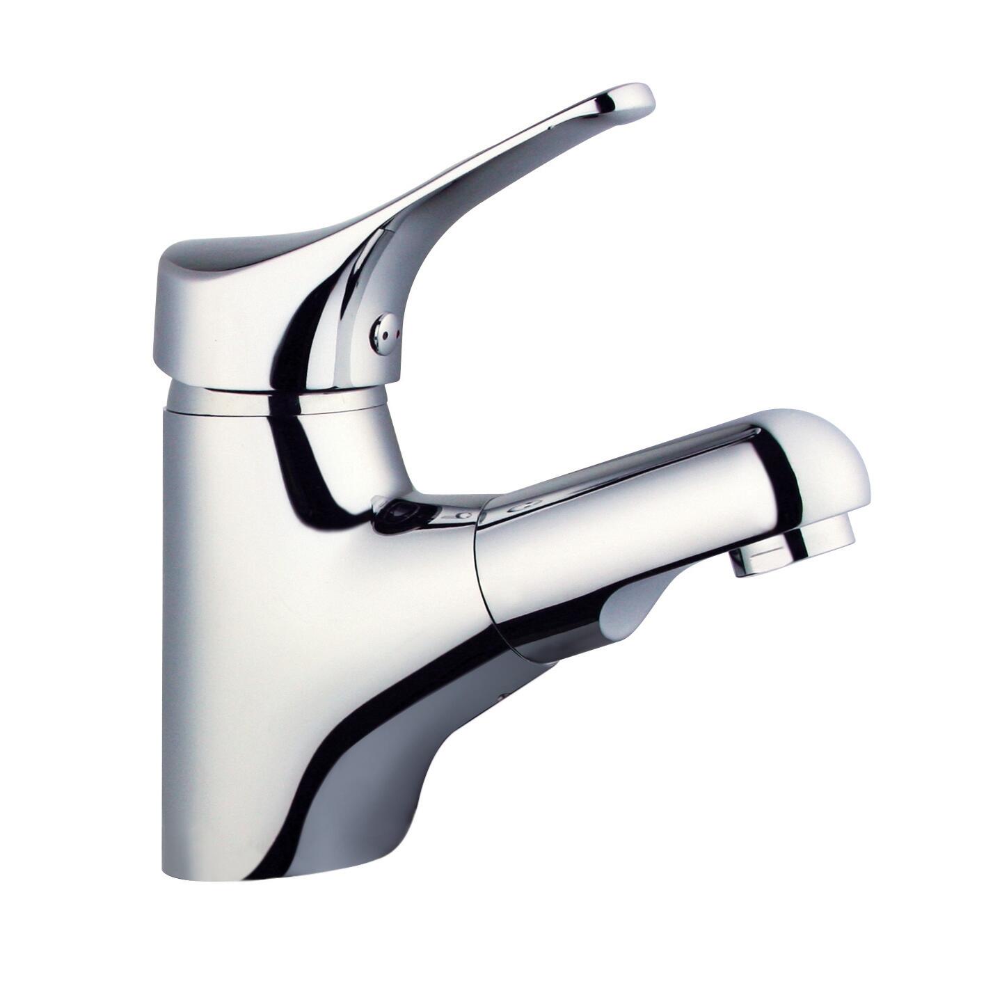 In ottone cromato lucido con doccetta estraibile. Flessibili e set di fissaggio inclusi. Ideale per ambienti pubblici. La doccetta estraibile permette un lavaggio agevole e il riempimento di contenitori