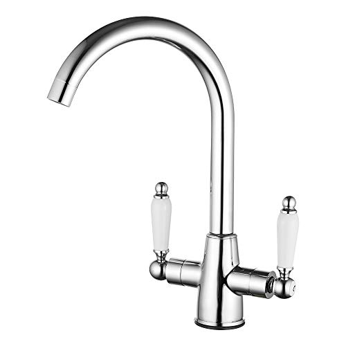 Rubinetto Lavabo da Cucina Doppio Comando Manopola in Ceramica Miscelatore Monocomando Cucina Girevole 360 ° in Ottone con Acqua Fredda e Calda
