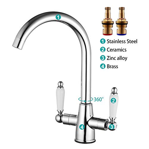 ✿ [Doppio manico in ceramica]: il design del doppio manico in ceramica e la rotazione di 360 gradi possono fornire più spazio per varie attività del lavandino. Offrono spazio sufficiente per riempire pentole e padelle e pulirle;